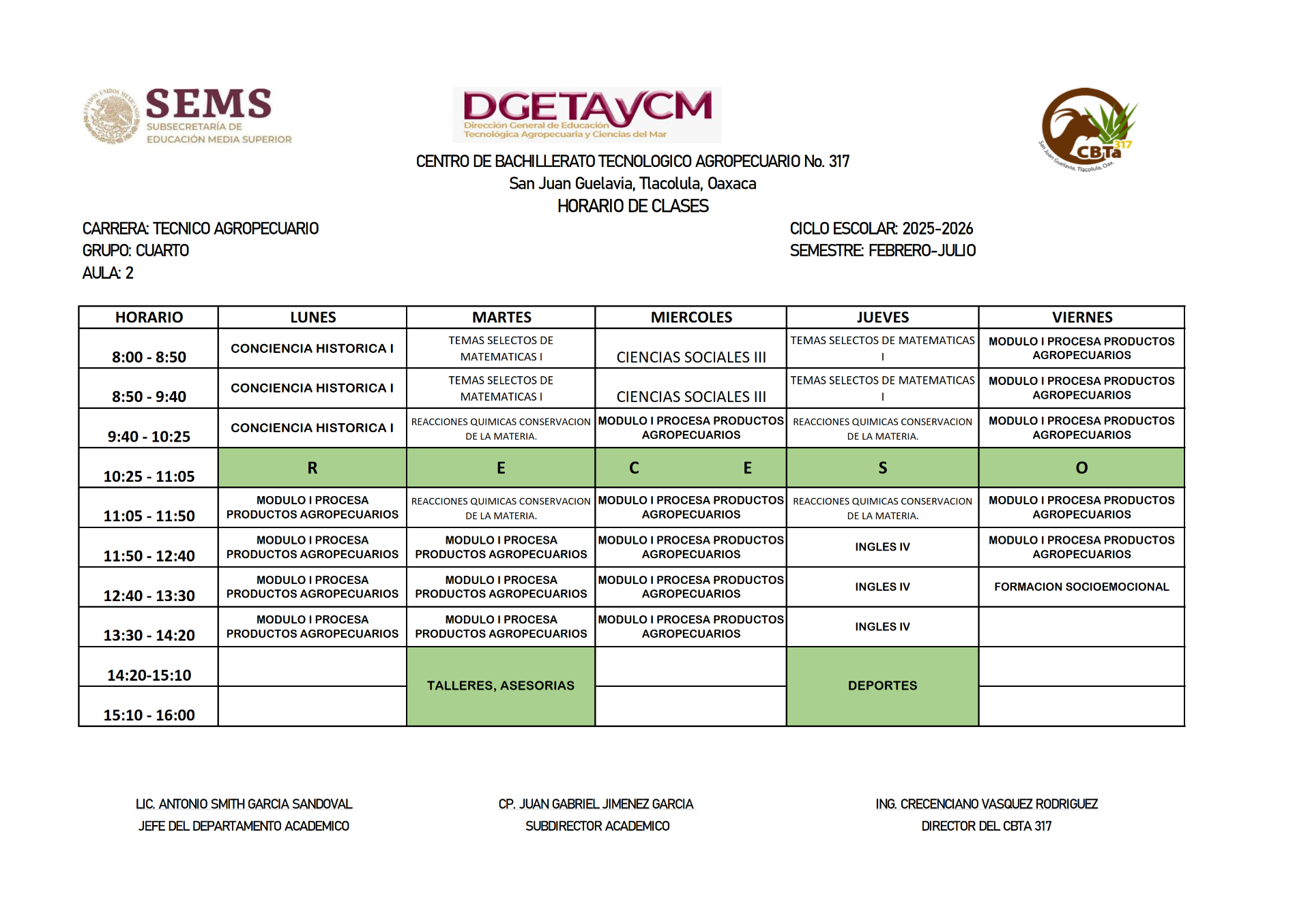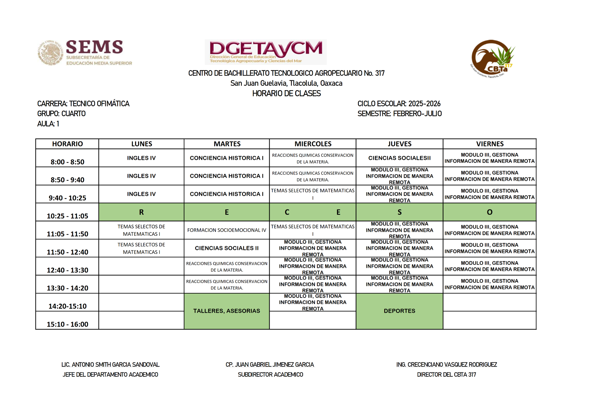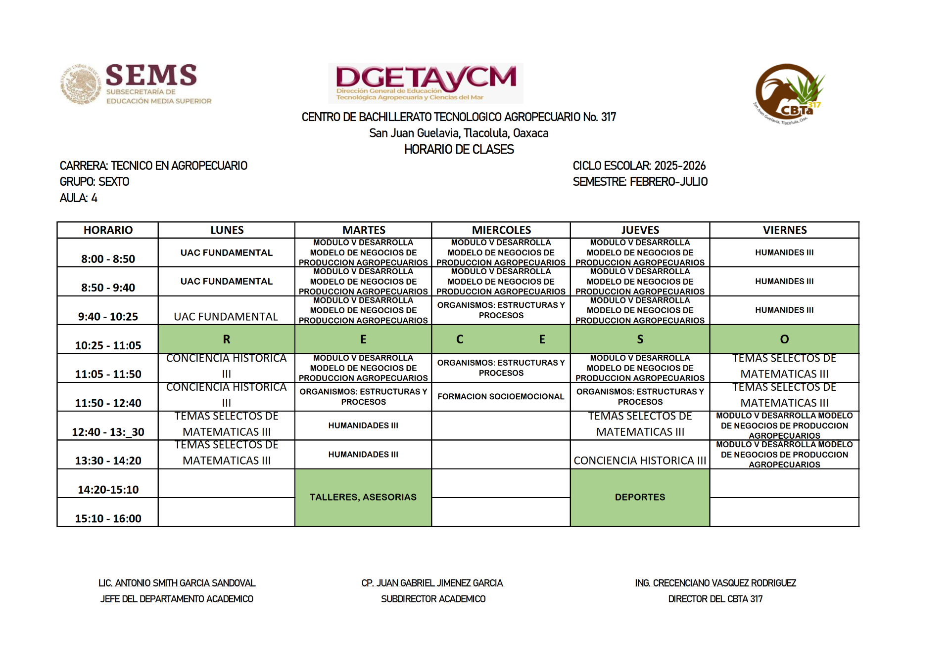 HORARIOS DEL SEMESTRE FEBRERO 2025 - JULIO 2025